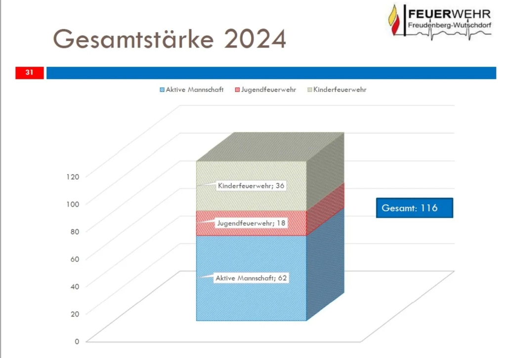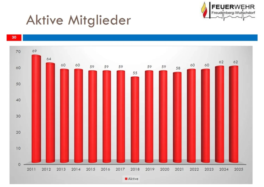 Die aktive Einsatzmannschaft umfasst weiterhin 62 Mitglieder.