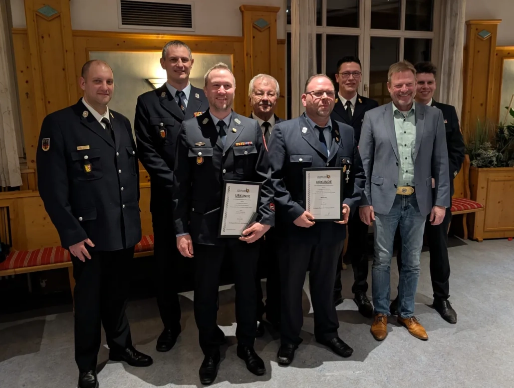Kreisbrandinspektor Armin Daubenmerkl lobte die intensive Kinder- und Jugendarbeit sowie den hohen Ausbildungsstand der Wehr. Zudem würdigte er die Verdienste des scheidenden Bürgermeisters und erinnerte an wichtige Projekte, die während dessen Amtszeit realisiert wurden – darunter die Beschaffung des Mehrzweckfahrzeugs, des LF20KatS, des TSF Etsdorf, des TSA Bühl und weitere Investitionen in die gemeindliche Feuerwehrinfrastruktur.