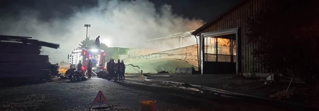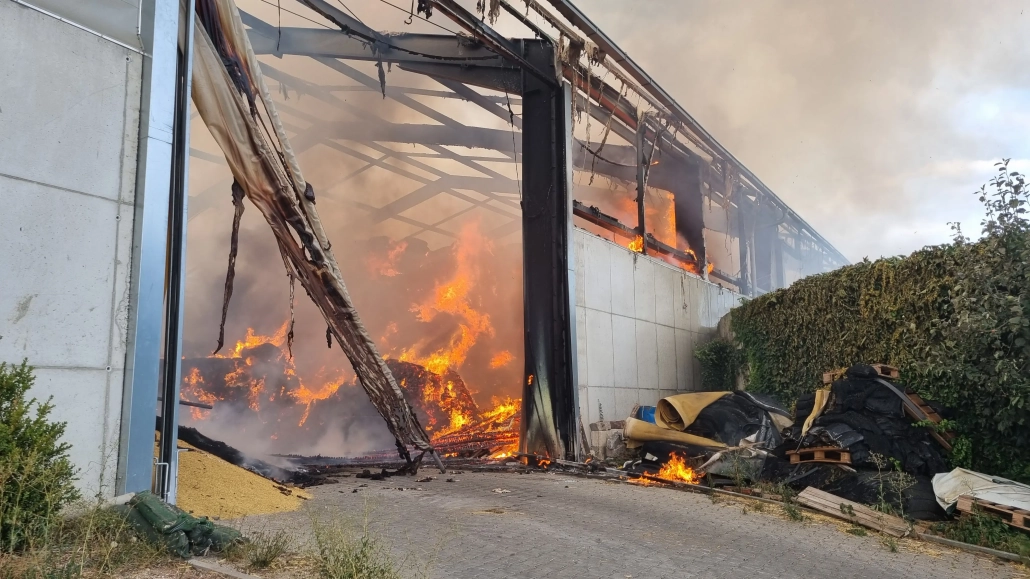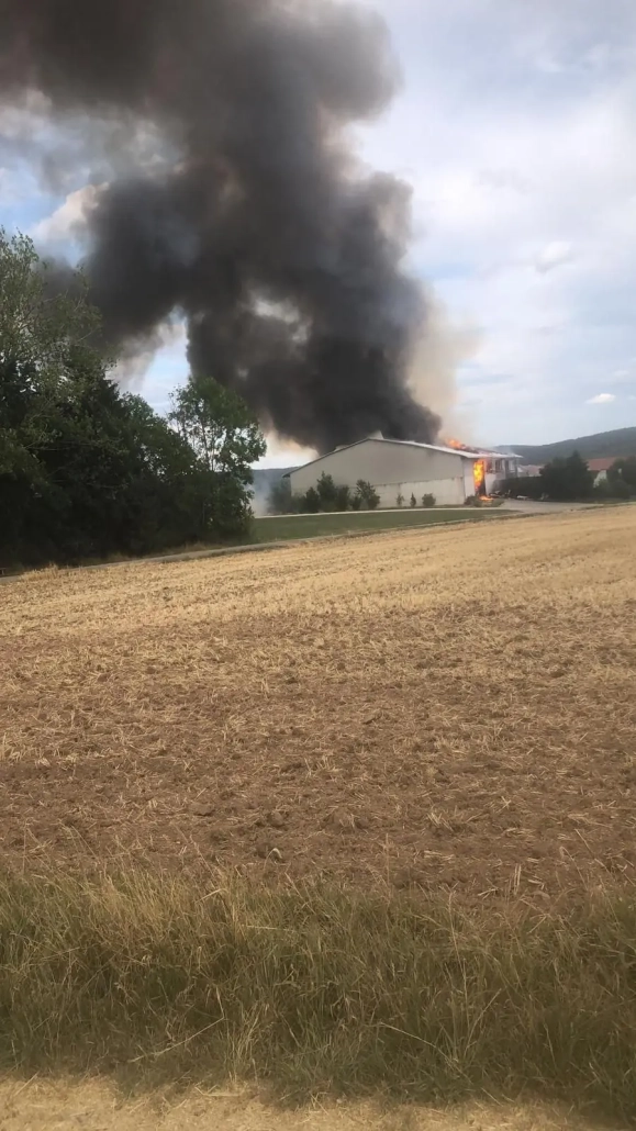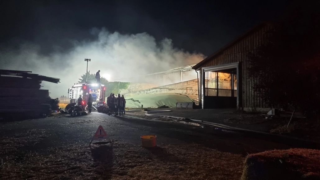 Am frühen Donnerstagabend geriet in Schwand eine rund 25 x 40 Meter große Lagerhalle mit Stroh, Ernte und Futtermitteln in Vollbrand. Etwa 150 Einsatzkräfte aus den örtlichen Feuerwehren und der Kreisbrandinspektion waren im Einsatz.