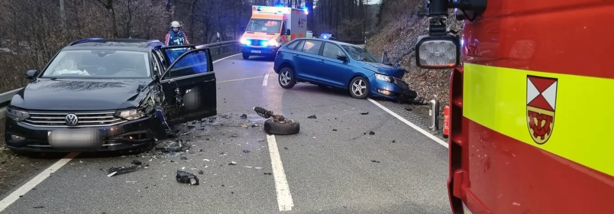 Die Staatstraße war für die Rettungsmaßmahmen komplett gesperrt, die Polizei ermittelt derzeit die Unfallursache.