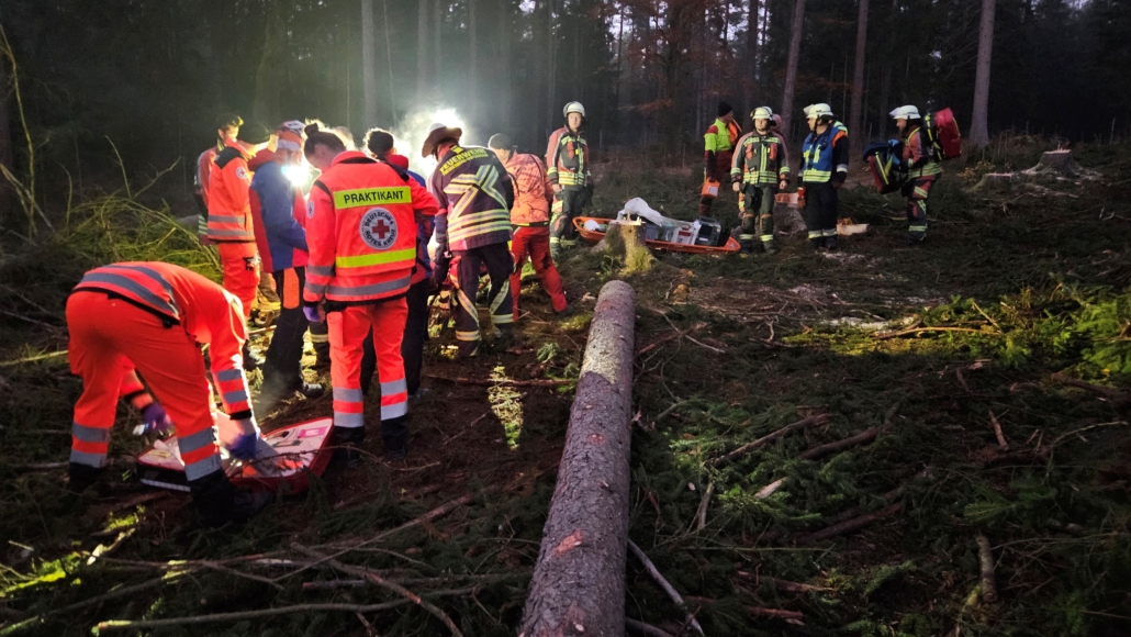 Am vergangenen Freitag den 07.11.2025 um 16:22 Uhr zu einem Rettungseinsatz in schwer zugänglichem Gelände bei Ellersdorf alarmiert. Ein verletzter Waldarbeiter benötigte medizinische Hilfe. Unser First Responder traf als erstes an der Einsatzstelle ein und begann sofort mit der Erstversorgung. Die Einsatzstelle lag rund 300 Meter abseits eines befahrbaren Weges – wir lotsten die nachrückenden Einsatzkräfte dorthin und unterstützten im weiteren Verlauf. Der Transportweg musste von Ästen befreit werden, um einen sicheren Abtransport zu ermöglichen. Aufgrund der schnell einsetzenden Dunkelheit sorgten wir für eine umfassende Ausleuchtung der Einsatzstelle sowie des Verfügungsraums.