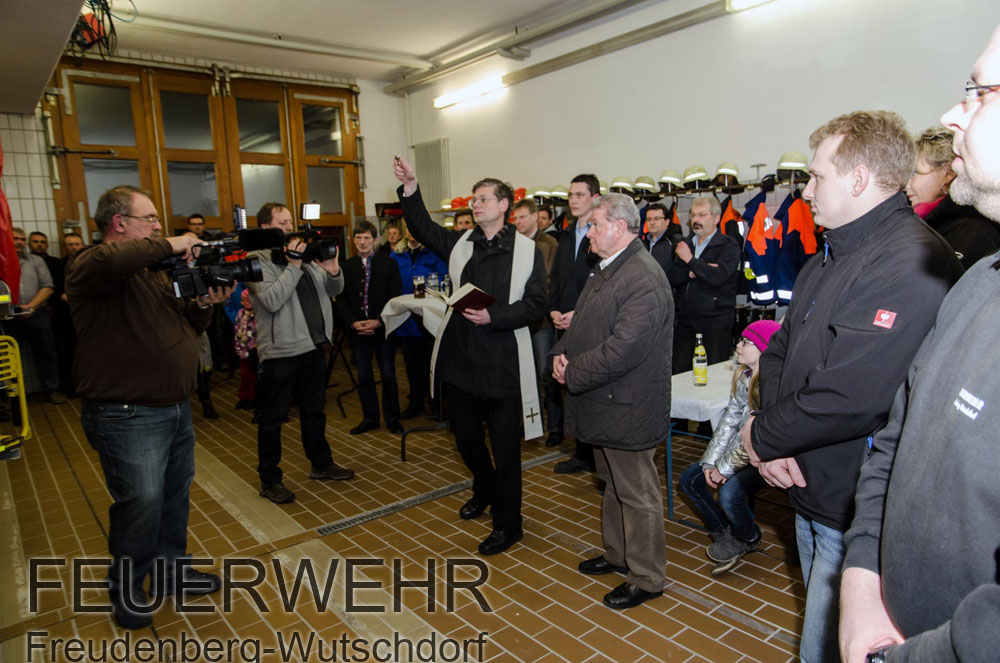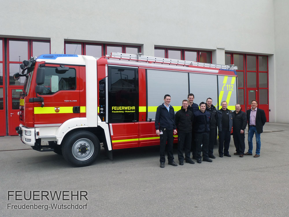 Am 27.04.2014 kam das Fahrzeug dann geführt vom Kommandant Armin Daubenmerkl, zusammen mit Bürgermeister Norbert Probst am Gerätehaus in Freudenberg an. Zahlreiche Interessierte hatten sich dort eingefunden um das neue Schmuckstück zu bewundern und die ersten Eindrücke wirken zu lassen. Nach den Grußworten hielt Pfarrer Nobert Götz eine kleine Fahrzeugsegnung ab und gab den geistlichen Segen für das neue Löschfahrzeug.