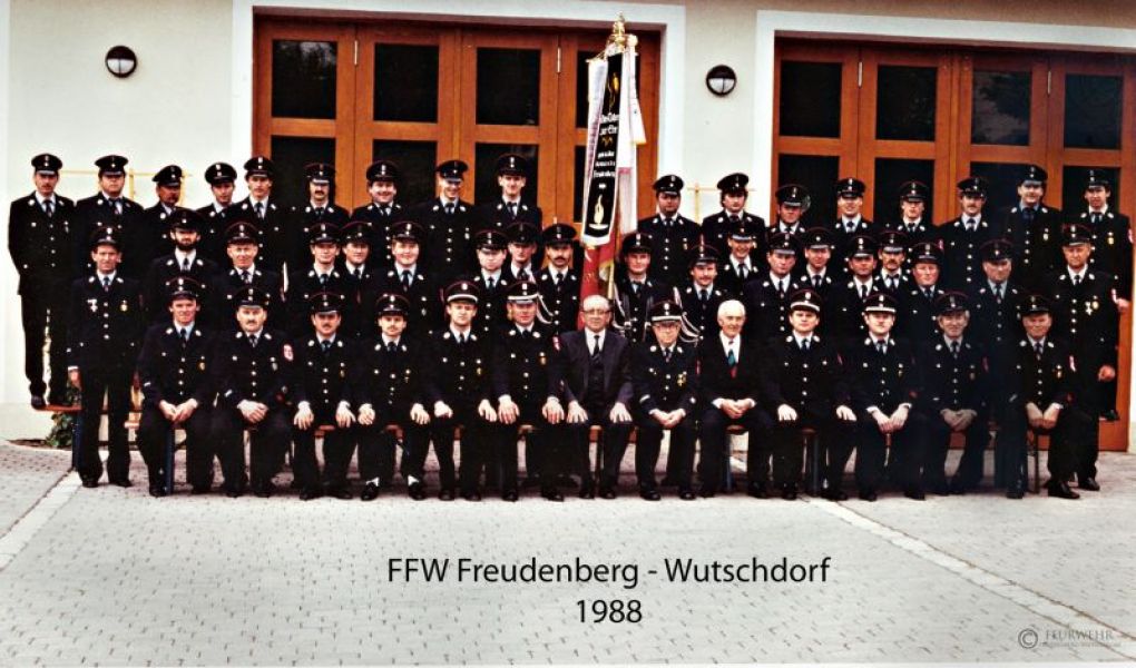 Die Gründung erfolgte in einer Versammlung am 8. Mai 1878 im Gasthaus zum „Schwarzen Raben“. Bereits ein Jahr zuvor hatten sich die beiden Gemeinden Freudenberg und Wutschdorf zum Neubau eines Feuerwehrspritzen- und Gemeindehauses entschlossen.
